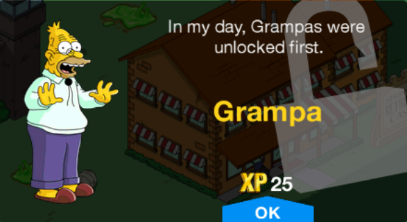 In order to level up, you've got to collect . It unlocks at level 26 with the taskthis little wiggy pt.3. From the writers of the simpsons, comes the city building game that lets you create your own living, breathing springfield! This page is for the characters that appear in the simpsons: Among them is grampa simpsons, homer's father and crotchety old man.
